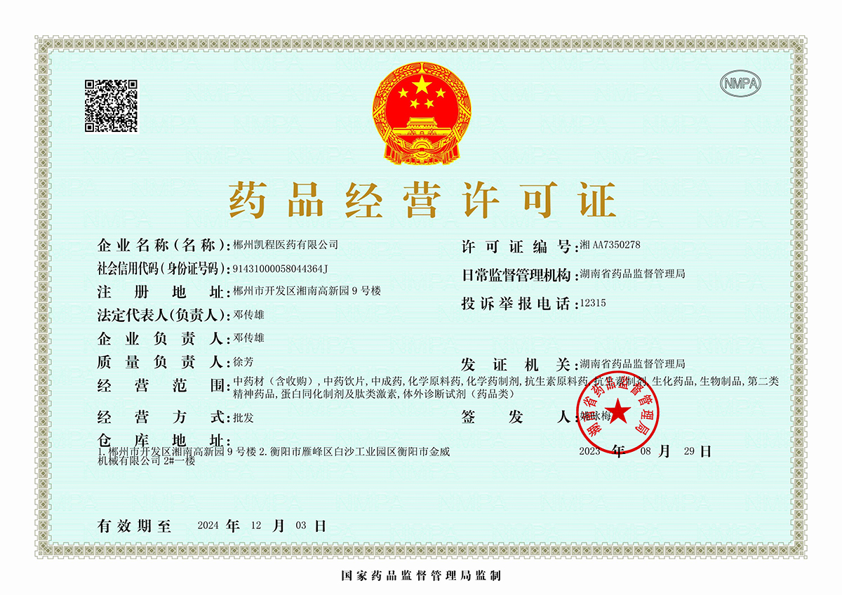 藥品經(jīng)營(yíng)許可證:湘AA735000051